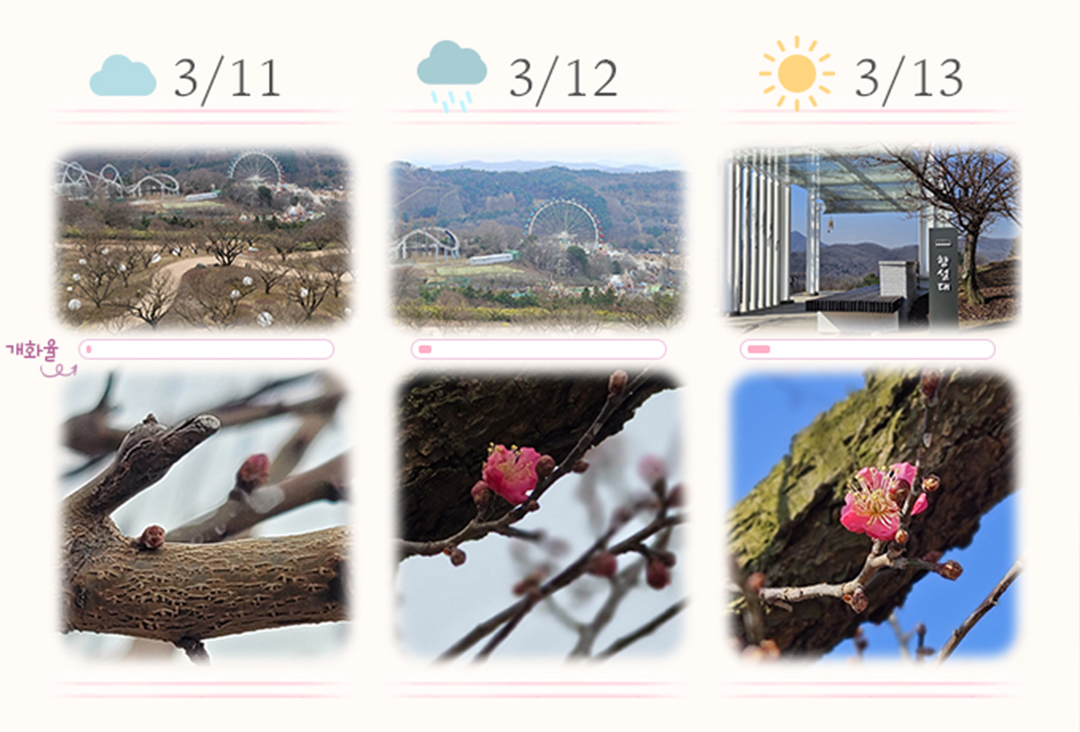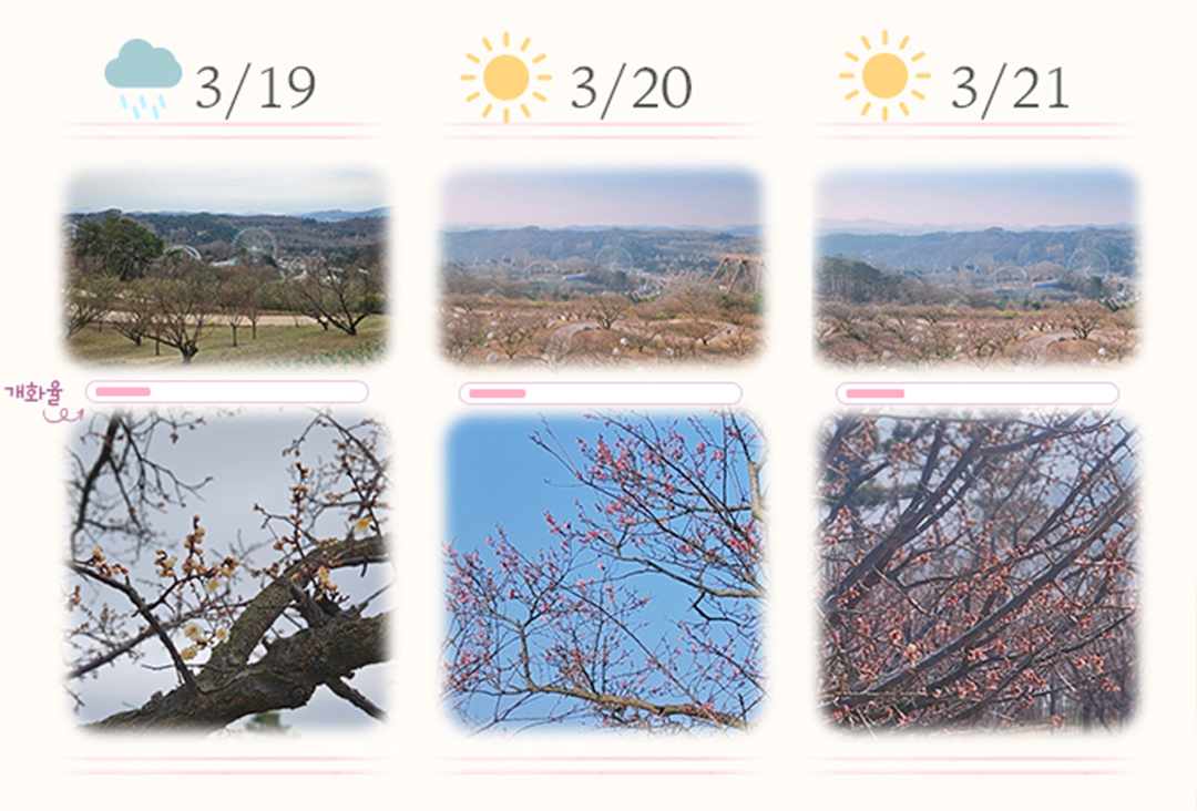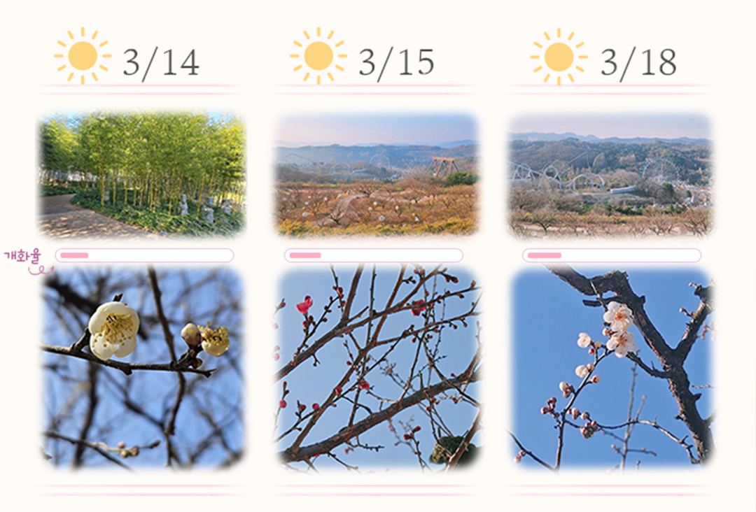 에버랜드에서는 매화꽃의 상태 정보를 제공하고 있습니다..