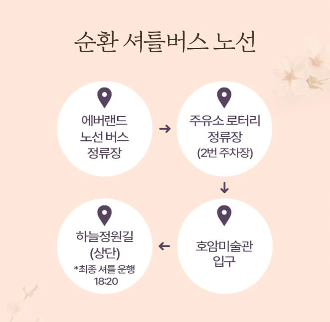 또한 투어에 맞춰 에버랜드 하늘정원길 전용 순환 셔틀 버스를 이용하면 더욱더 편리하게 이동할 수 있답니다^^